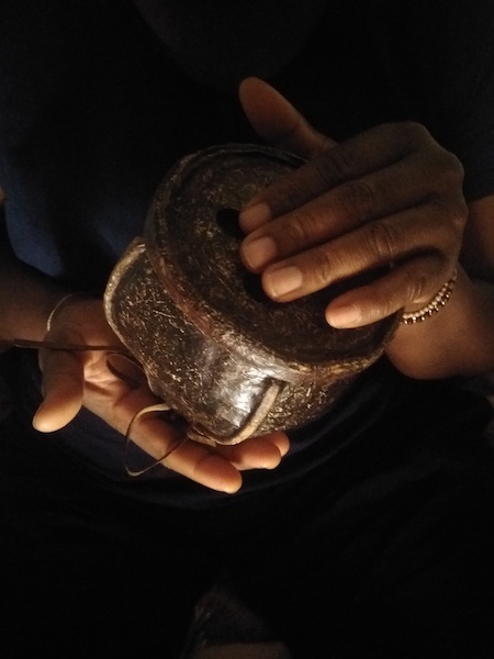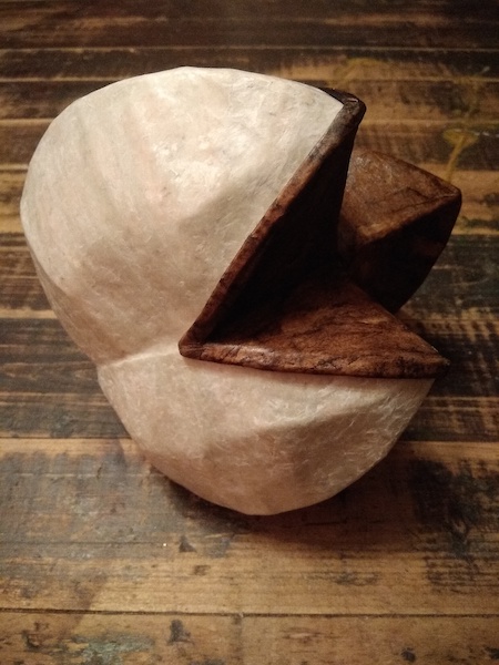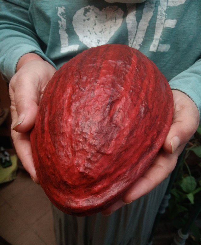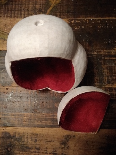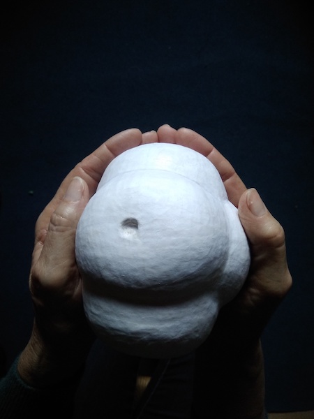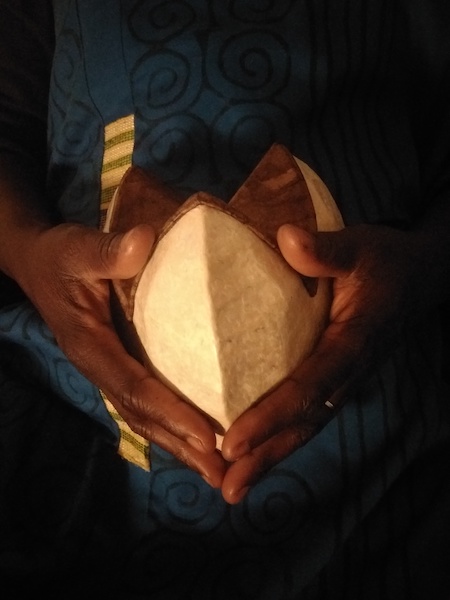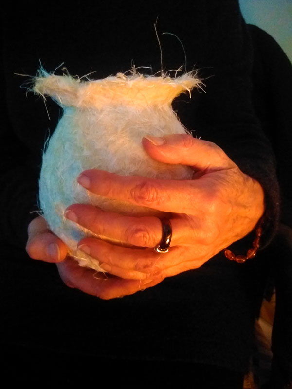 Chacune de ces graines est créée spécifiquement pour un enfant disparu et pour sa mère, si elle souhaite participer à ce projet. Une fois la graine construite, la mère la remplit, seule, de ce qu’elle veut : texte, tissus, objets, … Une fois scellée, je prends une photo de la graine dans les mains de la mère.